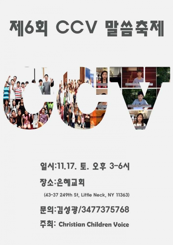 2011년부터 크리스찬 영상제작으로 시작한 CCV(Christian Children Voice) 사역은 2014년 어린이용 QT 영상 제작으로부터 본격적인 사역을 시작했습니다. 어린이 입으로 전하는 복음 메시지를 통해 한국의 가족과 친지들에게 복음을 전하는 사역을 시작하여 지금까지 100여명의 뉴욕과 뉴저지의 한인교회와 중국교회의 어린이들이 동참했습니다. 이 영상은 CCV 유튜브 채널(youtube.com/user/starlightkim1970)와 홈페이지(ccvworldnet.com)를 통해서 볼 수 있습니다.