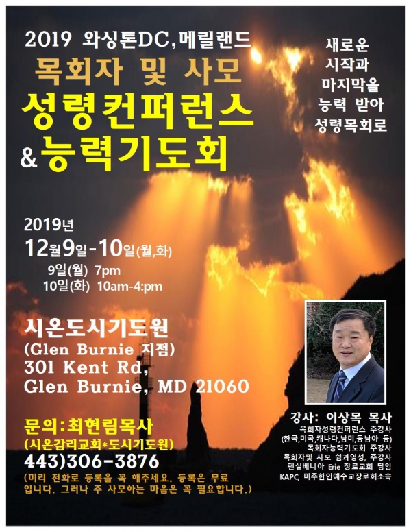 2019년말, 와싱톤DC지역 목회자 능력집회 강사: 이상목 목사
