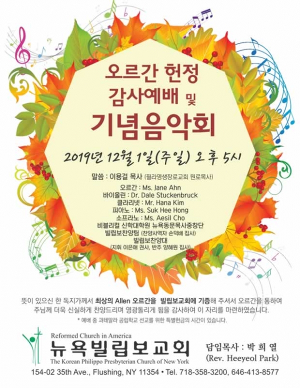 뉴욕빌립보교회 오르간 헌정 감사예배 및 기념음악회