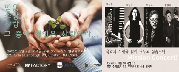 2020년 1월 4일(토) 오후 6시 선교콘서트가 한무리교회에서 열립니다.