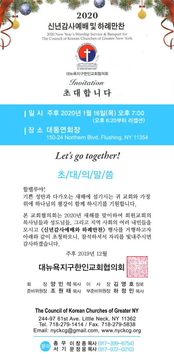 뉴욕교협 2020 신년감사예배 및 하례만찬