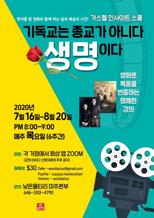 낮은울타리 미주본부(대표 : 조희창 목사)에서 영화로 복음을 변증하는 명쾌한 강의 <Gospel Insight School 가스펠 인사이트 스쿨>을 화상앱 ZOOM으로 엽니다.