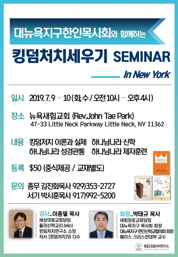 에서는 소속 목사님들과 교회에 도움을 드리고자 ‘킹덤처지 세우기 세미나’를 아래와 같이 계획