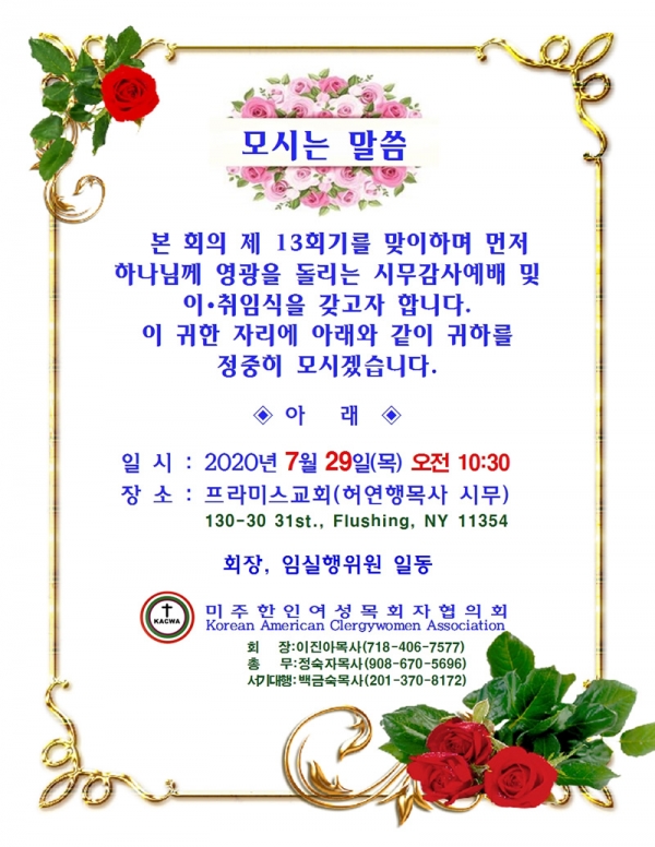 미주한인여성목 제13회기 시무감사예배 및 이취임식