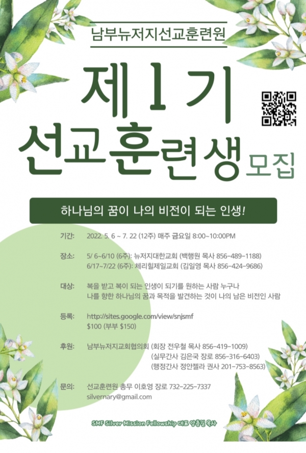남부 뉴저지 선교훈련원 1기 개강 안내 입니다.