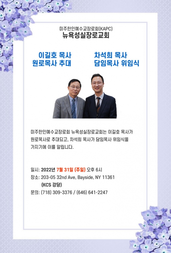 뉴욕성실장로교회 담임목사 이취임식 > 행사 등 여러가지 홍보