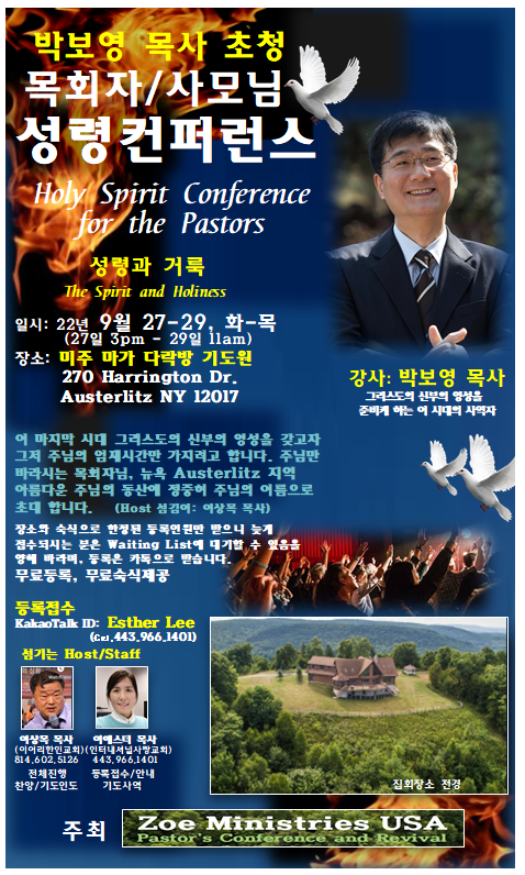 이 마지막 시대 그리스도의 신부의 영성을 갖고자 그저 주님의 임재시간만 가지려고 합니다. 주님만 바라시는 목회자님, 뉴욕 Austerlitz 지역 아름다운 주님의 동산에 정중히 주님의 이름으로 초대 합니다. (Host 섬김이: 이상목 목사)