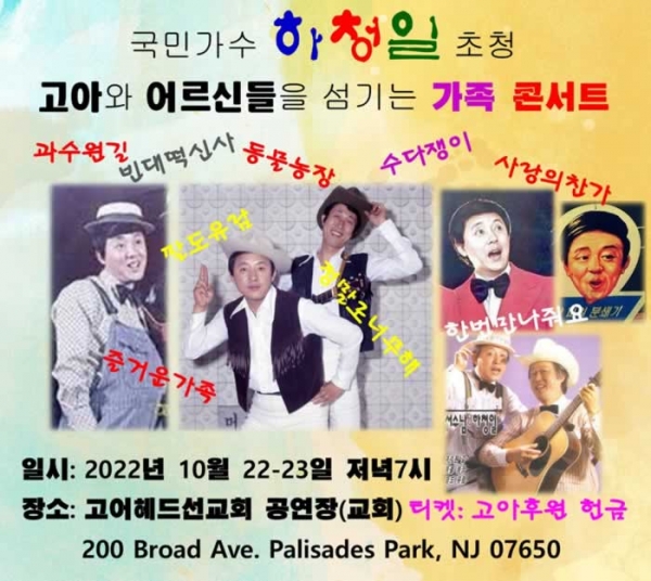 국민가수 하청일씨를 초청하여 고아를 돕기 위한 가족 콘서트를 열게 되었습니다