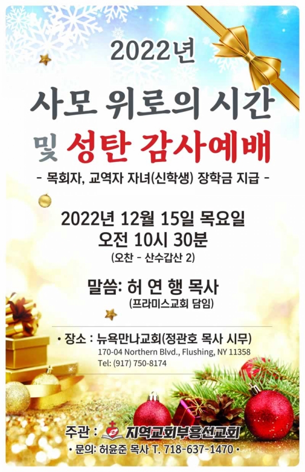할렐루야! 어느덧 2022년 성탄의 계절을 맞이하게 되었습니다. 우리를 구원하시기 위해서 이 땅에 오신 우리 구주 예수님을 찬양합니다.