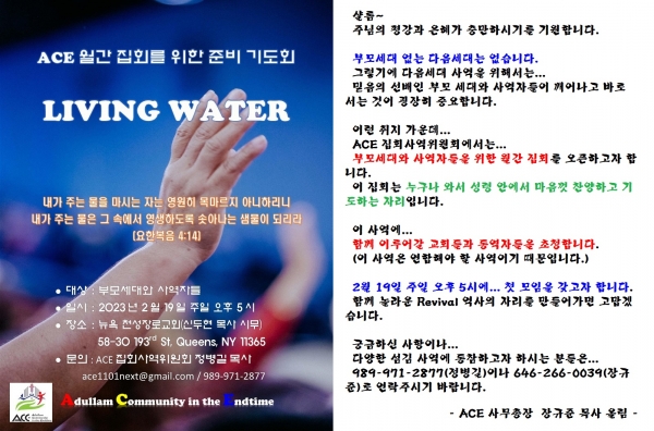 ACE 월간 집회(LIVING WATER)를 위한 준비 기도회