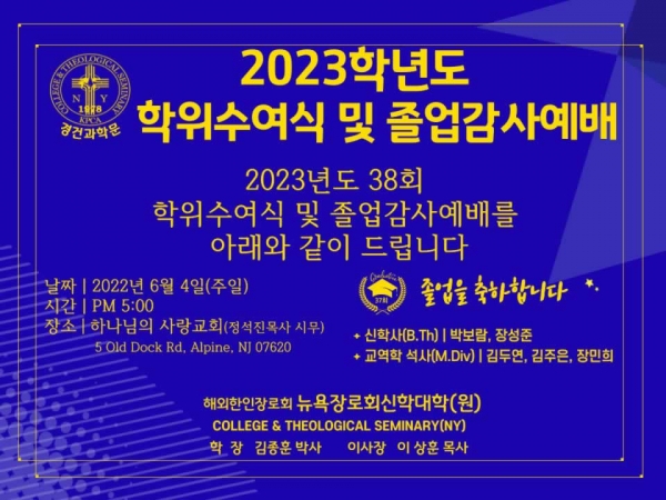 뉴욕장신 2023 학위수여식 및 졸업감사예배 > 행사 등 여러가지 홍보