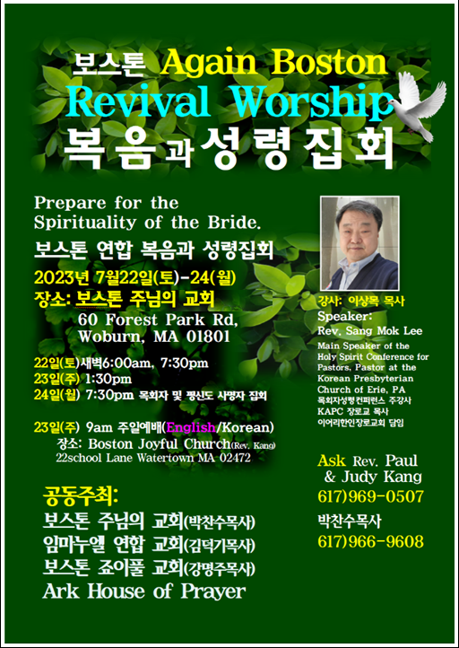 주최: 보스톤 주님의 교회, 박찬수 목사