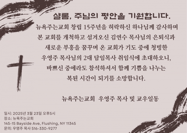 김연수 목사 은퇴 및 우영주 2대 담임목사 취임식 > 행사 등 여러가지 홍보
