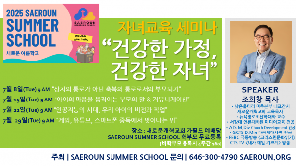 자녀교육세미나 문의 : 새로운여름학교 Tel. 646-300-4790