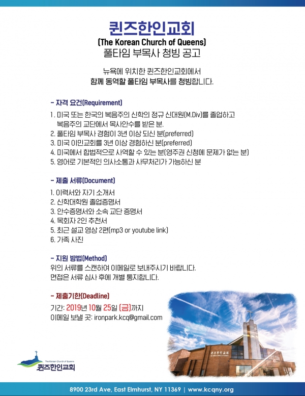 [NY] 함께 동역할 부목사 청빙 페이지 정보 퀸즈한인교회ㆍ2019-10-15 관련링크 이전글 다음글 수정 삭제 목록 본문 귀한 사역을 함께 동역할 부모님을 모십니다. 댓글목록 등록된 댓글이 없습니다. 이전글 다음글 수정 삭제 목록