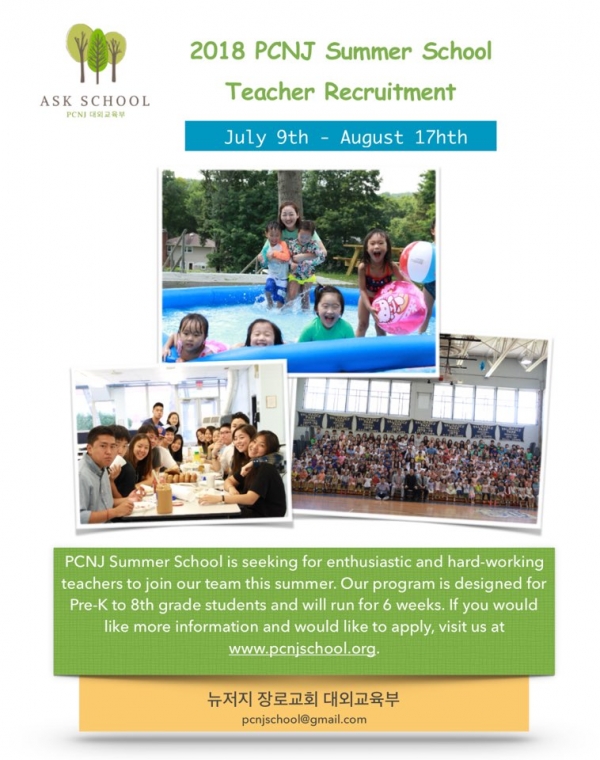 PCNJ Summer School is seeking for enthusiastic and hard-working teachers