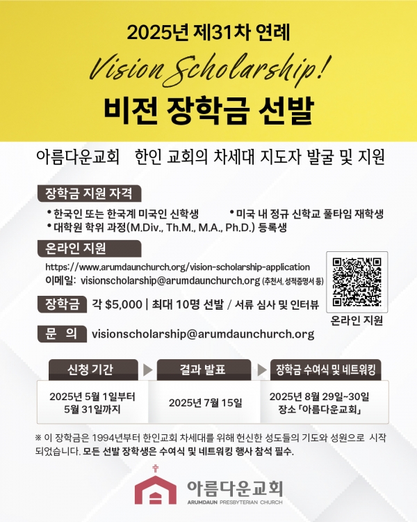 자세한 정보 및 신청: https://www.arumdaunchurch.org/vision-scholarship