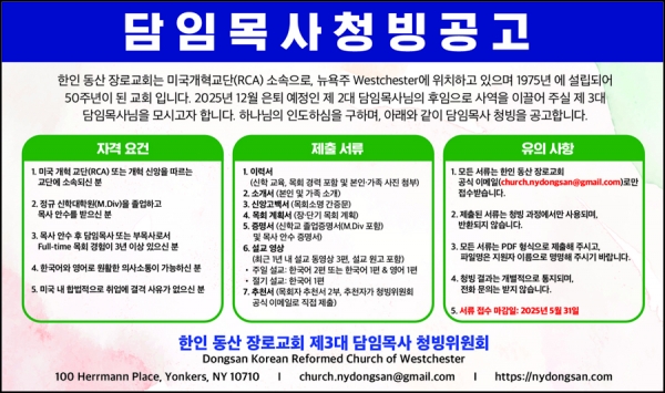 [뉴욕] 한인동산장로교회 담임목사 청빙