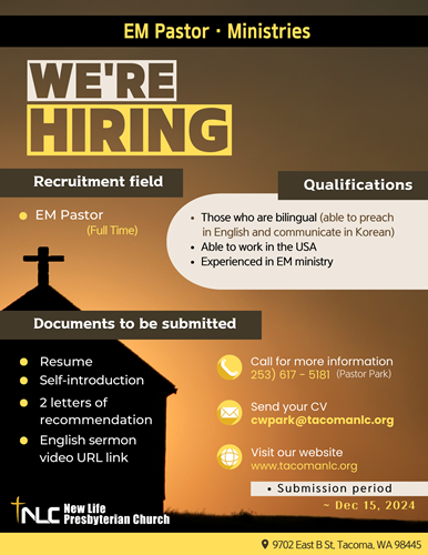[WA] 타코마 새생명교회 EM Pastor 목회자 청빙