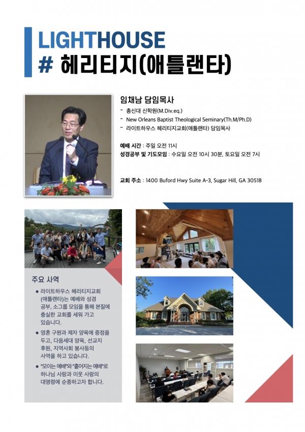 [GA] 라이트하우스 헤리티지교회(애틀랜타)에서 동역자를 청빙합니다.