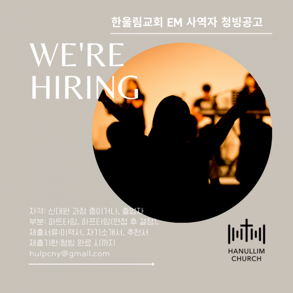 [NY] 한울림교회 EM 사역자 청빙 페이지 정보 전도사ㆍ2021-10-02 관련링크 이전글 다음글 목록 본문 한울림교회는 뉴하이드 파크에 있습니다. 귀한 사역자들의 많은 지원 바랍니다 댓글목록 등록된 댓글이 없습니다. 이전글 다음글 목록