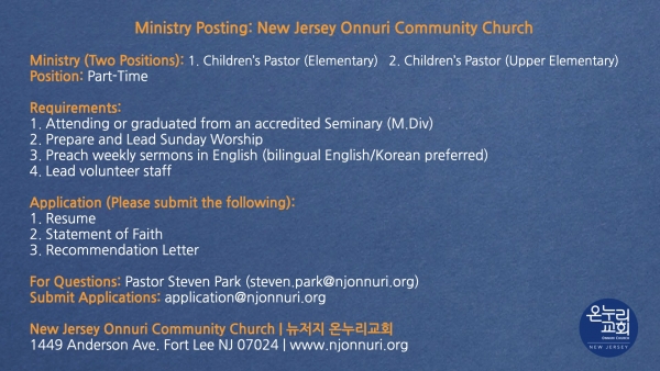 For Questions: Pastor Steven Park (steven.park@njonnuri.org)