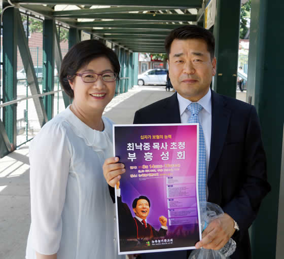 뉴욕늘기쁜교회(김홍석 목사)는 8월 2일(주일) 한여름의 더위가 절정인 오후 2시부터 플러싱 머레이 힐 역 앞, 소위 먹자골목에서 가두전도를 벌였다. 가두전도에는 늘기쁜교회의 자랑, 조이플 양상블팀의 오케스트라의 공연과 함께 진행됐다. 늘기쁜교회는 복음전도와 함께 부흥성회를 알리는 홍보물을 나누어 주었다. 늘기쁜교회는 "십자가 보혈의 능력"이라는 주제로 8월 14일부터 3일간 최낙중 목사(해오름교회)를 강사로 부흥성회를 개최한다.