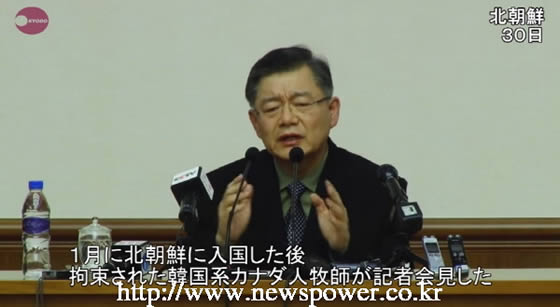 지난 1월 북한에 입국한 뒤 억류된 한국계 캐나다인 임현수 목사(토론토 큰빛교회) 30일, 평양에서 기자회견을 갖고, 자신이 북한 체제를 전복시키는 활동을 했다고 인정했다.