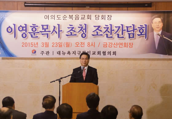 한기총 회장 이영훈 목사 초청 뉴욕조찬기도회가 3월 23일(월) 오전 8시 금강산연회장에서 열렸다. 이영훈 목사는 뉴저지에 사는 모친의 생신을 챙기기 위해 매년 같은 기간 방문하고 있으며, 뉴욕교계에서는 조찬기도회 자리를 통해 교계 목회자들과 소통하는 자리를 만들고 있다.