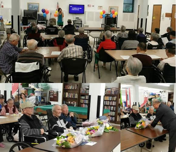 6월 24일(화) 오전, 롱아일랜드에 있는 뉴욕 한국요양원(원장 지나 김)에서는 요양원에 계시는 어르신 중에서 한국전에 참전했던 분들을 모시고 그들의 수고와 희생에 감사하는 시간을 가졌다. 한국 요양원에서는 3년째 이 행사를 이어오고 있는데 안타까운 것은 작년에 참석했던 미국 참전 용사중 한 분은 세상을 떠났고 두 분은 건강이 좋지 않아서 참석하지 못했다. 이 행사는, 애국가와 미국 국가를 제창하고 박영표 목사(원목)가 환영사를 한 후에 모두가 한국 전쟁 관련 영상을 감상했다. 이어서 요양원에 계시는 전 동포의 이름으로 감사장과 꽃다발을 전달하고 이소영 집사(만나교회)가 'Moon River' 와 '사명' 을 오카리나로 연주했고 김봉규 목사(선한목자교회 음악목사)가 '선구자'와 'Amazing Grace'를 불렀다. 모든 순서가 끝난 뒤에 다과회를 가지면서 참전용사에 대한 감사의 마음과 조국에 대한 사랑의 마음을 다시 한 번 다졌다.