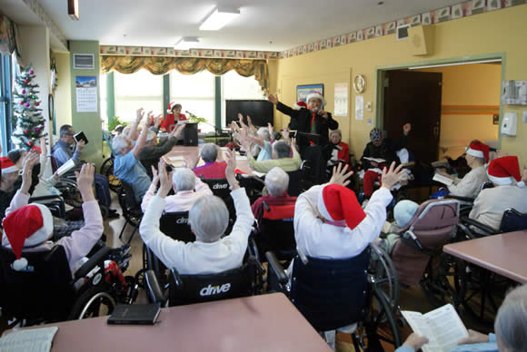 뉴욕일원의 양로원, 너싱홈등을 방문하여 노인사역을 전문적으로 하고 있는 뉴욕병원선교회 김영환 목사(뉴욕효성교회)가 12월 21일(토) 오후 2시 롱아일랜드에 있는 한국요양원을 방문하여 성탄절 선물잔치를 열었다. 한국요양원 채플룸에서 부흥회 못지 않게 뜨겁게 진행된 예배후 산타 김영환 목사는 준비한 선물을 노인들의 손에 안겨주고 식사를 대접하는 시간을 가졌다.