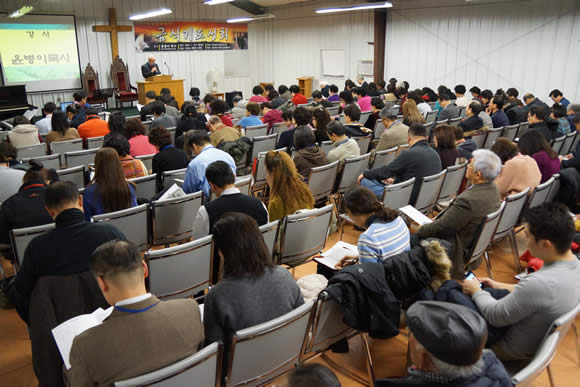 윤병이 목사는 귀신잡는 해병으로 월남전에서 큰부상을 당하고 지금도 몸이 불편한 역전의 상이용사입니다. 하나님의 영적군사로 변신한 칠순의 윤 목사는 2시간이상에 걸쳐 긴 말씀을 전할정도로 열정이 있었습니다. 무엇보다 신년기도회가 순복음 스타일로 뜨거운 아멘이 충만한 집회이기보다는 말씀중심으로 진행됐습니다. 윤 목사는 한국 합동측 목사로 반여제일교회를 담임하고 있습니다.
