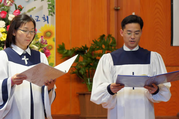 ▲임직예배가 열린 뉴욕새천년교회 예배당