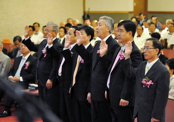 더우기 이번 임직예배는 6명의 시무 장로와 6명의 안수 집사, 15명의 시무 권사, 총 27명이 임직을 받아 뉴욕내 한인교회에서는 보기 드문 규모의 임직식을 보여 주었다.