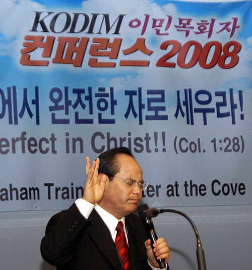 KODIM 컨퍼런스에 참가한 한기홍 목사(은혜한인교회)는 저녁기도회를 인도하면서 "세상을 변화시키는 사역자가 됩시다(사도행전 3장 1-10절)"라는 제목으로 말씀을 인도했다.