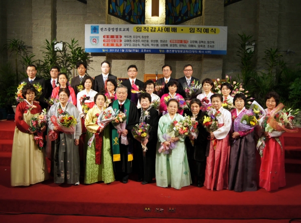 퀸즈중앙장로교회(안창의 목사) 임직감사예배 및 임직예식이 1월 22일(주일) 오후 4시 열렸다. 장로 장립 박두현 오강석 최성호, 안수집사 장립 김태영 이경주 이은웅 유성원 정금순, 명예권사 임직 강문혜 김복순 임선옥, 권사 임직 강부강 김승숙 박금옥 박수열 심동혜 윤정희 이덕순 이혜숙 임옥경 조숙은등 21명이 임직을 받았다.