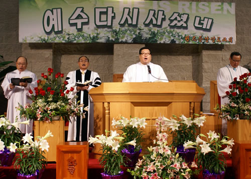 퀸즈중앙장로교회의 예배당은 백합으로 화사하게 장식하여 부활절 분위기를 더했다. 예배를 드리기 전 참가한 목회자들은 원을 그려 기도로 예배를 준비했다. 이병홍 목사는 기도를 통해 경제도 부활되며 희망도 부활되는 부활의 날을 선포했다.
