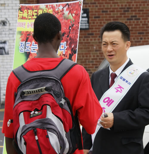 전도대학 관계자들, 졸업생과 재학생들이 같이 한 전도에는 이왕복 목사(서울 잠실행복한교회)를 강사로 9월 19일(금)부터 3일간 저녁 뉴욕신광교회(한재홍 목사)에서 열리는 전도집회를 소개하며 준비한 유인물과 볼펜을 나누어 주었다.