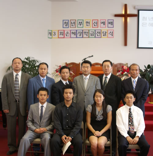 이날 오세준(은총장로교회), 이기쁨(큰샘교회), 육근우(백민교회), 김희선(늘기쁜교회)등 4명이 천불씩 장학금을 받았다. 또 교회를 이전하는 예닮교회(임재홍 목사)에도 천불의 기금이 전달됐다.