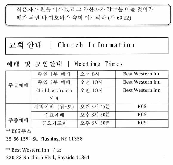 ▲뉴욕모자이크교회 창립주일 1호 주보