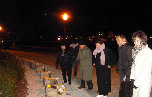 신년 벽두인 2008년 1월 2일(수) 저녁, 지난해에 32명이 불의에 충격으로 숨진 사건 현장인 버지니아 텍 희생자 추모비 앞에서 유지성 장로등 금강산식당 직장선교회에서 온 10명이 서 있었다.