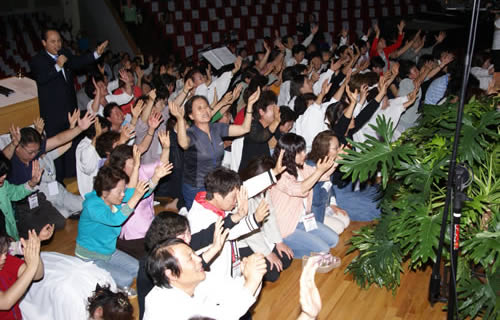 한기홍 목사의 인도로 정면 십자가를 중심으로 강단과 복도를 매운 350 기도의 용사등은 무릎을 꿇고 간절한 기도가 이어졌다. 기도의 불길은 높았고 아무도 그것을 막을수 없었다. 그들의 간절한 소망들은 얼굴과 높은 목소리 그리고 높이 든 손에서 나타났다.
