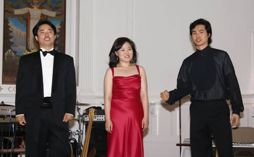 김영인 목사의 기도로 음악회가 시작됐다. 테너 이용훈(오페라 가수)의 ‘박연폭포‘를 테너 문성영(생명샘교회 지휘자)이 ’뱃노래‘로 받았다. 또 듀엣으로 ’향수‘를 들려주었다. 이어 등장한 소프라노 김문희와의 삼중창은 오페라를 보듯 다이나믹하게 진행됐다.