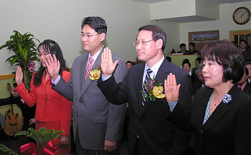 2부 취임식은 담임목사 소개 · 서약 · 선포 지방회장 노기송 목사, 악수례 교인대표 이종상 장로와 이종원 안수집사, 담임목사에게 권면 한재홍 목사(뉴욕신광교회), 교우들에게 권면 백창건 목사(새문교회), 축사 노순구 목사(뉴저지 한인침례교 지방회장) · 조명철 목사(뉴욕교협 총무) · 정춘석 목사(뉴욕목사회 회장), 비디오 답사, 기념품 증정, 축도 박진하 목사(퀸즈침례교회)의 순으로 진행됐다.