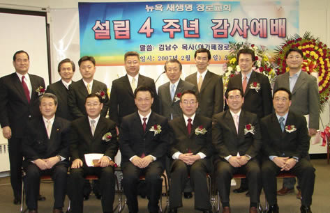 뉴욕새생명장로교회(허윤준 목사)의 교회설립 4주년 감사예배는 한 마디로 감사와 비전이 충만한 예배였다. 설립 4주년에 성전 건축 위원회가 조직되고 $170,000의 재원을 확보한 교회, 간판 없이 예배하는 교회, 학원을 렌트하기 때문에 예배 때마다 강대상을 옮기고 있는 (3000회) 교회, 설립 1주년부터 매년 감사예배를 드려 온 교회, 임신한 사모가 은혜롭게 성가대 지휘를 하는 교회, 작지만 옹골찬 비전이 드러나 보이는 교회였다.