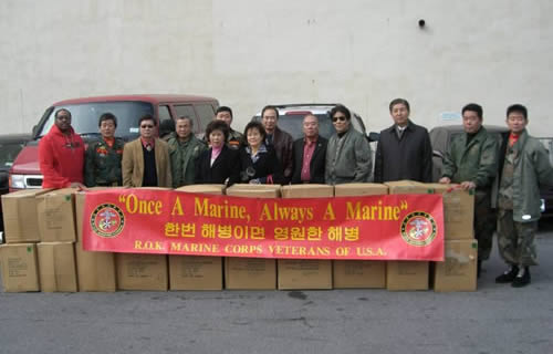 맨하탄 할렘에서 해병대가 멋진 작전을 해 냈다. 미동부지역 해병대 전우회(회장 조광래)는 연말을 맞이하여 12월 28일 맨하탄 할렘지역에서 10년째 사역을 하고 있는 브니엘선교회(대표 김명희 선교사)에게 6천불 상당의 점퍼 240벌을 제공했다. 전달식은 맨하탄 할렘에 위치한 소울세이빙 스테이션에서 있었다.