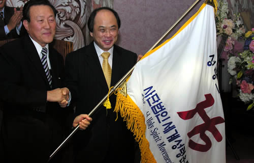 이어 세계성령운동중앙협의회 측은 뉴욕협의회 장석진 회장에게 뉴욕성신클럽기를 전달하는 시간을 가졌다.