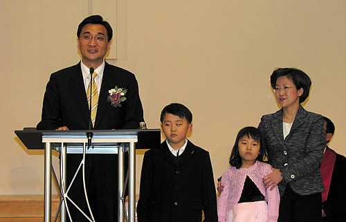 이재훈 목사는 이날 답사를 통해 먼저 이날 행사를 위해 한국에서 직접 방문했으며 목회를 지도해준 스승격인 하용조 목사에게 감사를 돌렸다. 또 이민교회의 역할을 넘어 다민족이 같이하는 교회, 지역사회와 같이하는 시대적 사명을 잘 담당하는 교회로 키워나가겠다고 말했다. 이날 이 목사의 가족들이 나와 인사를 하는 시간을 가졌으며, 위임선서를 하는 순간 이 목사의 눈에는 눈물이 젖었다.