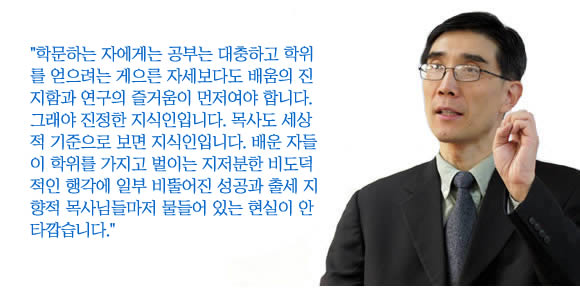 학문하는 자에게는 공부는 대충하고 학위를 얻으려는 게으른 자세보다도 배움의 진지함과 연구의 즐거움이 먼저여야 합니다. 그래야 진정한 지식인입니다. 목사도 세상적 기준으로 보면 지식인입니다. 배운 자들이 학위를 가지고 벌이는 지저분한 비도덕적인 행각에 일부 비뚤어진 성공과 출세 지향적 목사님들마저 물들어 있는 현실이 안타깝습니다.