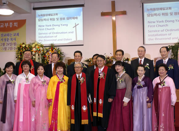 뉴욕동양제일교회가 빈상석 목사의 위임식과 장로 6명의 임직식을 통해 김일광 목사 소천후 있었던 교회의 혼란과 갈등을 마무리 짓고 새로운 출발을 다짐했다.